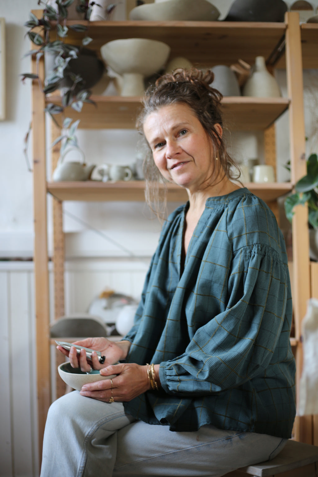 Kim est potière et façonne à la main, jour après jour, l’argile dans son atelier.