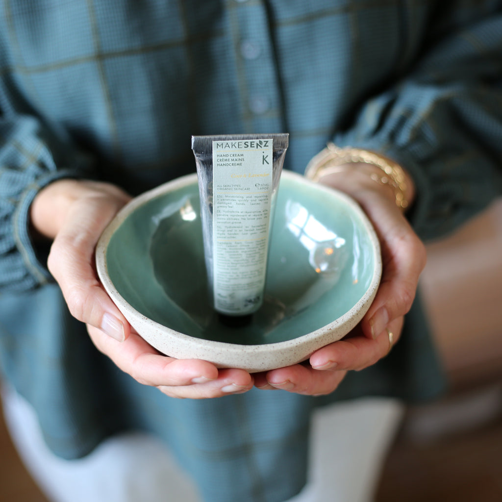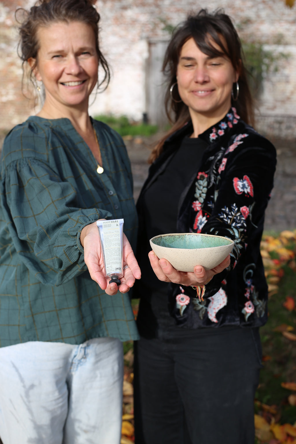 Elles souhaitent vous offrir au travers de ce duo crème-mains et céramique, une parenthèse de réconfort et de soin quotidien. Prendre soin de ses mains, c’est honorer ce qu’elles expriment de nous.